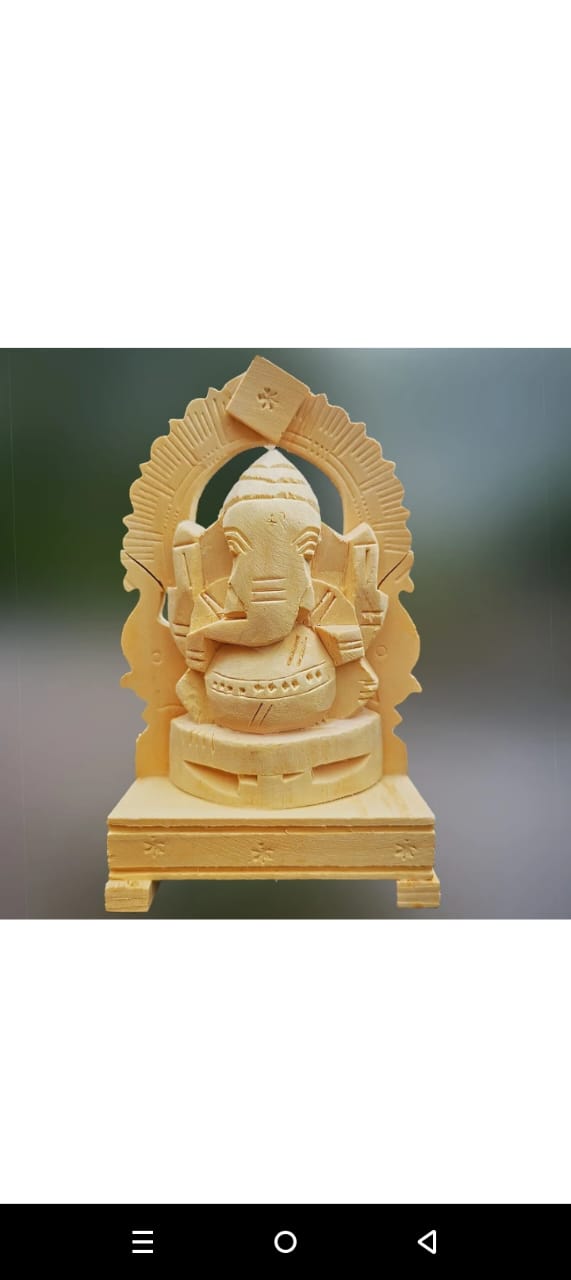 Decorative handmade Ganesh idol with prabhai. Perfect for pooja room, home décor and gifting.